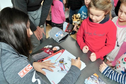 Unter Anwesenheit von Sportinspektor Wolfgang Oebelsberger, Präsident der Sportunion Günther Mitterbauer, Vereinsobmann Manuel Hujara, Bürgermeisterin Johanna Obojes-Rubatscher und Oberperfer-Bergbahnen-Geschäftsführer Hubert Deutschmann unterschrieb Stephanie Venier die Patenschaft für unsere Schulen. Für die Kinder war noch Gelegenheit, Fragen an Stephanie Venier zu stellen und anschließend eine Autogrammkarte abzuholen.